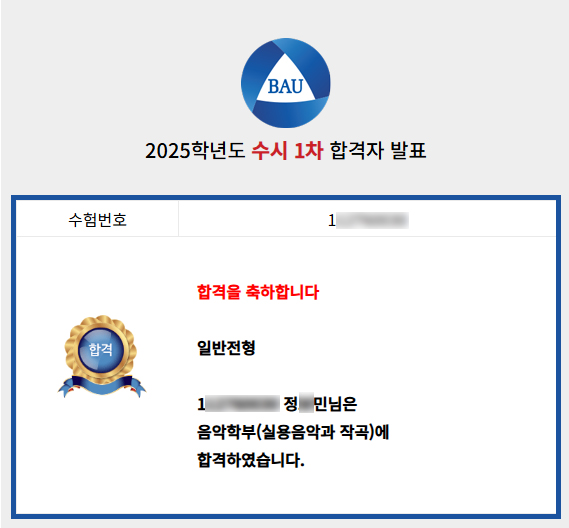 2025학년도 백석예술대학교 실용음악과 작곡전공