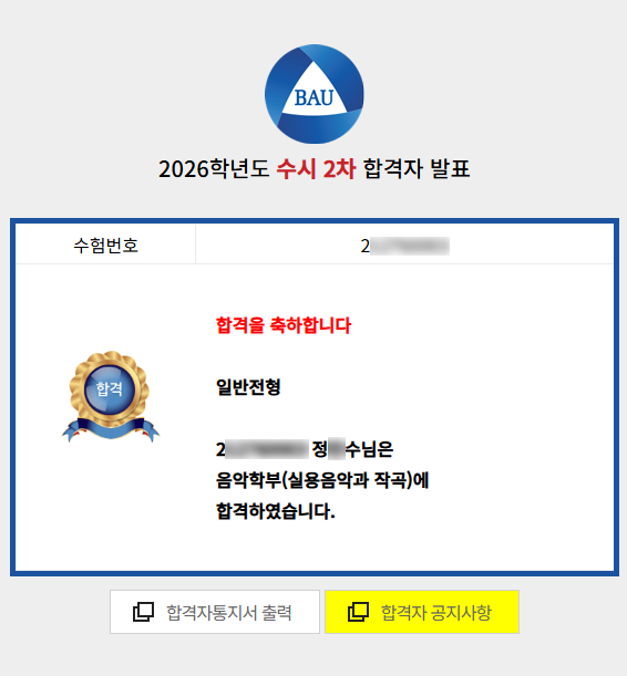 2026학년도 백석예술대학교 실용음악과 작곡전공